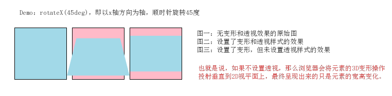 [2] 透视 perspective:透视是3D效果中最重要的内容,如果不设置透视,元素的3D效果将无法实现。