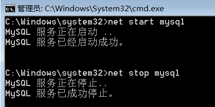 [ 命令行方式 ] 除通过操作系统提供的界面设置外,也可以使用命令行完成 MySQL 服务的启动和停止(需管理员身份)
