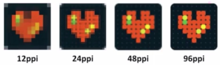 当设备尺寸相同但像素变得更密集时,屏幕能显示的画面的过渡更细致,网站看起来更明快。