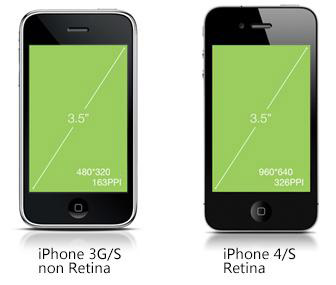 以iphone3s和iphone4为例,二者屏幕尺寸一样,屏幕分辨率相差一倍,屏幕像素密度也相差一倍。