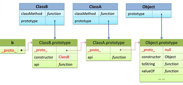 [ 原型链 ] 使用原型继承的方法会产生原型链。JS 中对于对象属性的查找、修改和删除都是通过原型链来完成的。