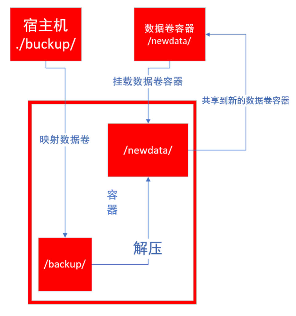 其操作流程为: // 简单来说就是,创建一个临时容器充当媒介,将数据卷容器中的数据备份到宿主机