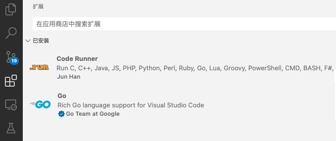 - 安装插件 “ Go ”,参考文档:https://makerplace.visualstudio.com/items?itemName=golang.go