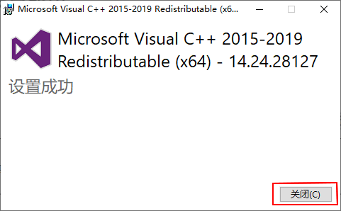 步骤 4:弹出设置成功界面,表示该框架已经安装完成,单击“关闭”按钮即可。