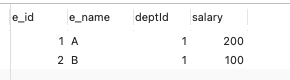 insert into tb_emp6 values (1,'A',1,100),(2,'B',1,50);